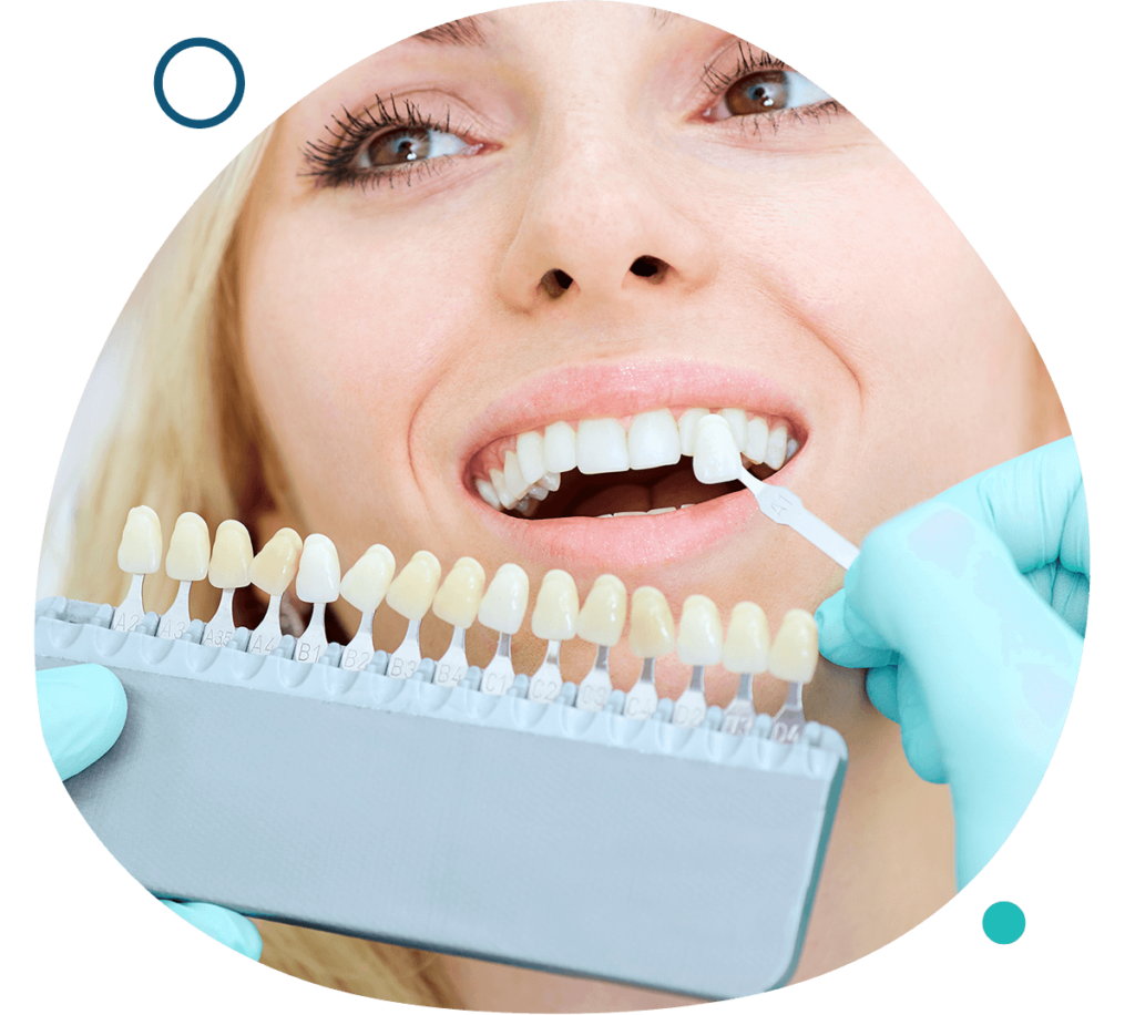 Odontología estética o tratamientos para mejorar la apariencia, función y oclusión de los dientes, como blanqueamiento, carillas, dentaduras, coronas, puentes, etc.
